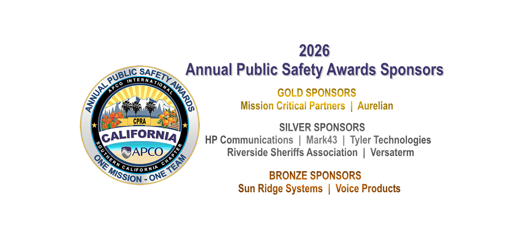 This is the home page of Southern California APCO ( The California Public-Safety Radio Association – CPRA ). Established in 1935, we are one of the largest APCO Only chapters in the Country. Our membership includes 9-1-1 Telecommunicators, PSAP Supervisors and Managers, RF/IT/GIS Technicians, Analysts, Engineers, Police/Fire/EMS personnel, State and Local Government employees, Military personnel, Tribal Police along with Vendors, Manufacturers, Service Providers, Consultants and more. Our chapter holds monthly Chapter Meetings that include Education & Training, Regional Frequency Coordination and PSAP Roundtables in several locations throughout Southern California.