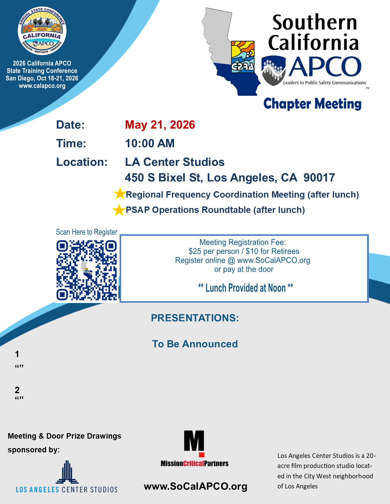 Register to be a Sponsor or Presenter online at SoCal APCO: Sponsor Meeting or Event